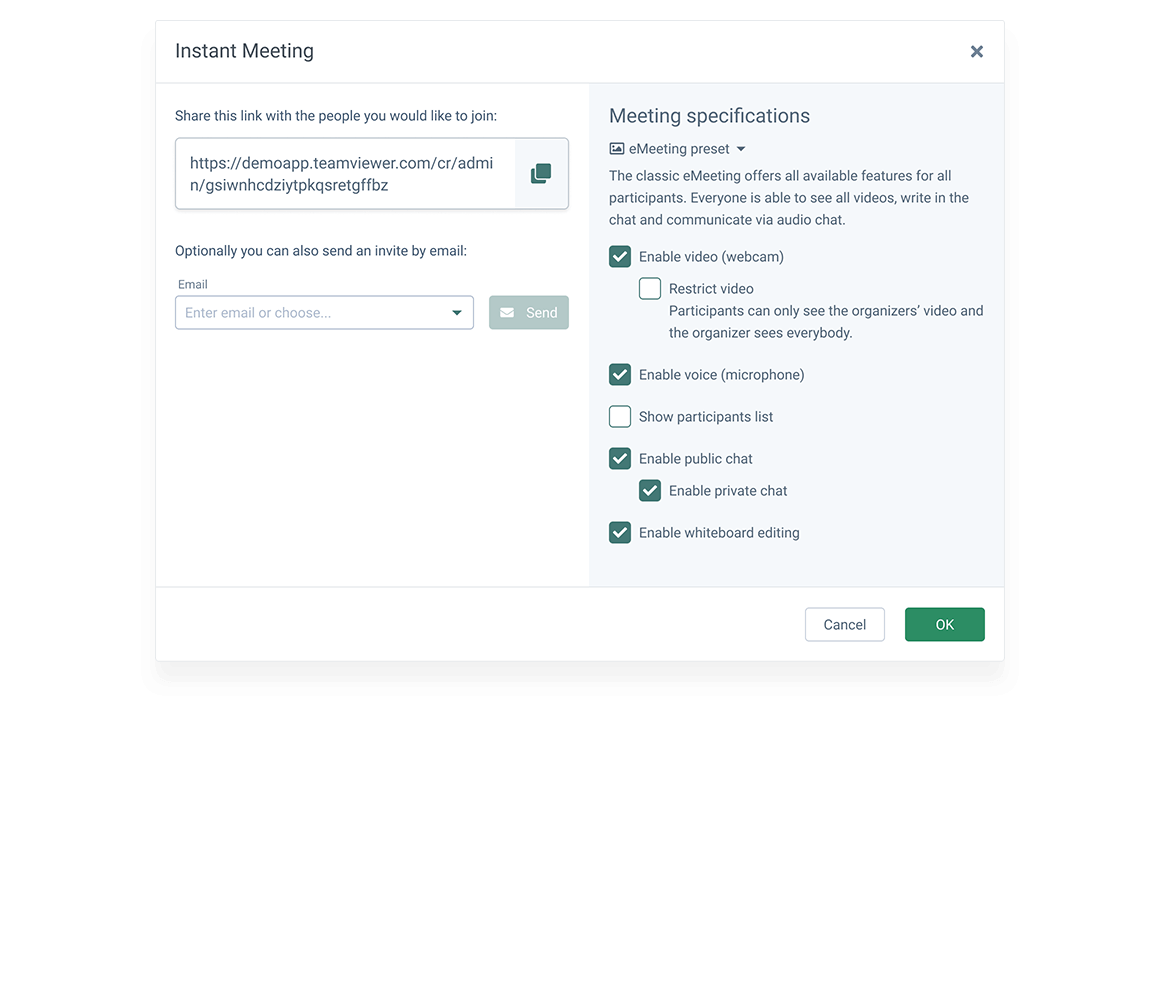 Additionally, use control options for public or private chat, and choose to enable a waiting room, lock a conference, or protect a conference with a password.