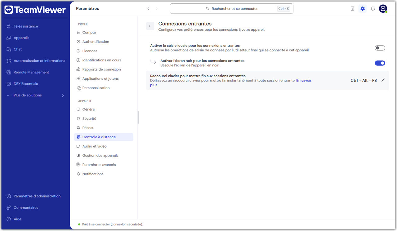 Pour personnaliser le raccourci clavier utilisé pour terminer les sessions de contrôle à distance, veuillez suivre les instructions ci-dessous :