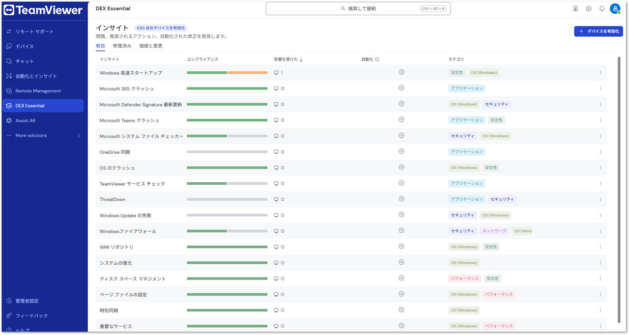 TeamViewer エージェントは、システム管理者がエンドポイントへリモートアクセスおよび制御を行うことを可能にします。サービスが実行されていない場合、この機能は利用できません。