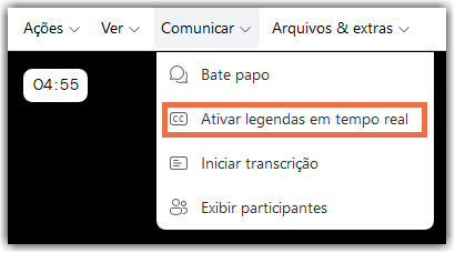 Para habilitar legendas ao vivo no lado do receptor de suporte, siga as instruções abaixo: