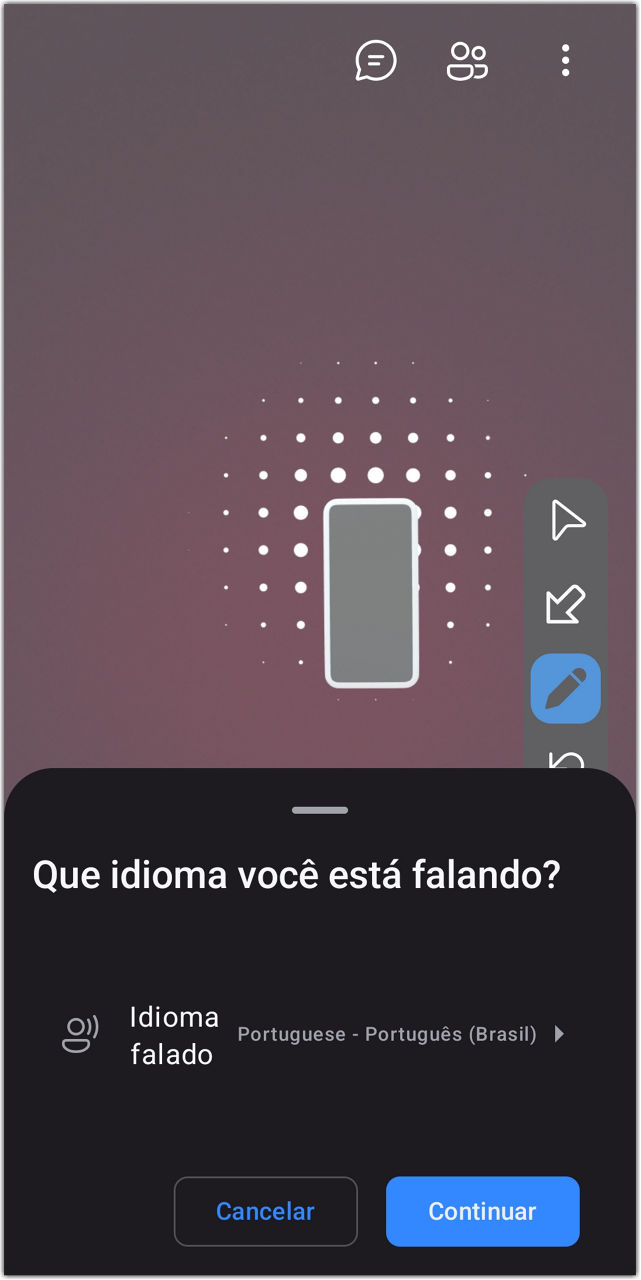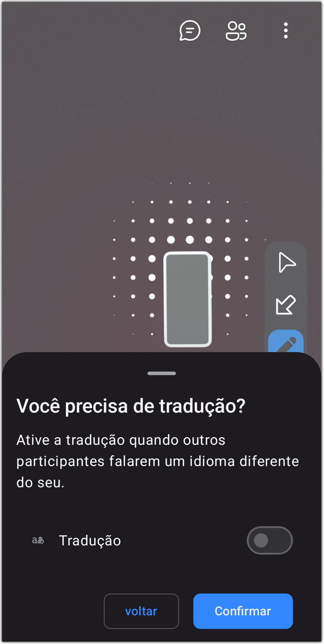 5. Opcional: Se os outros participantes da chamada não falarem o idioma que você escolheu, você pode ativar a tradução e definir o idioma desejado: